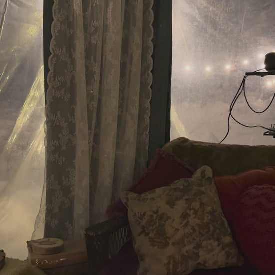 Flickering candles, stacks of books, and soft fur blankets create a vintage fairytale library vibe for your winter picnic. Enjoy the fire, the movie, and a magical, cozy evening with friends or your special someone.
